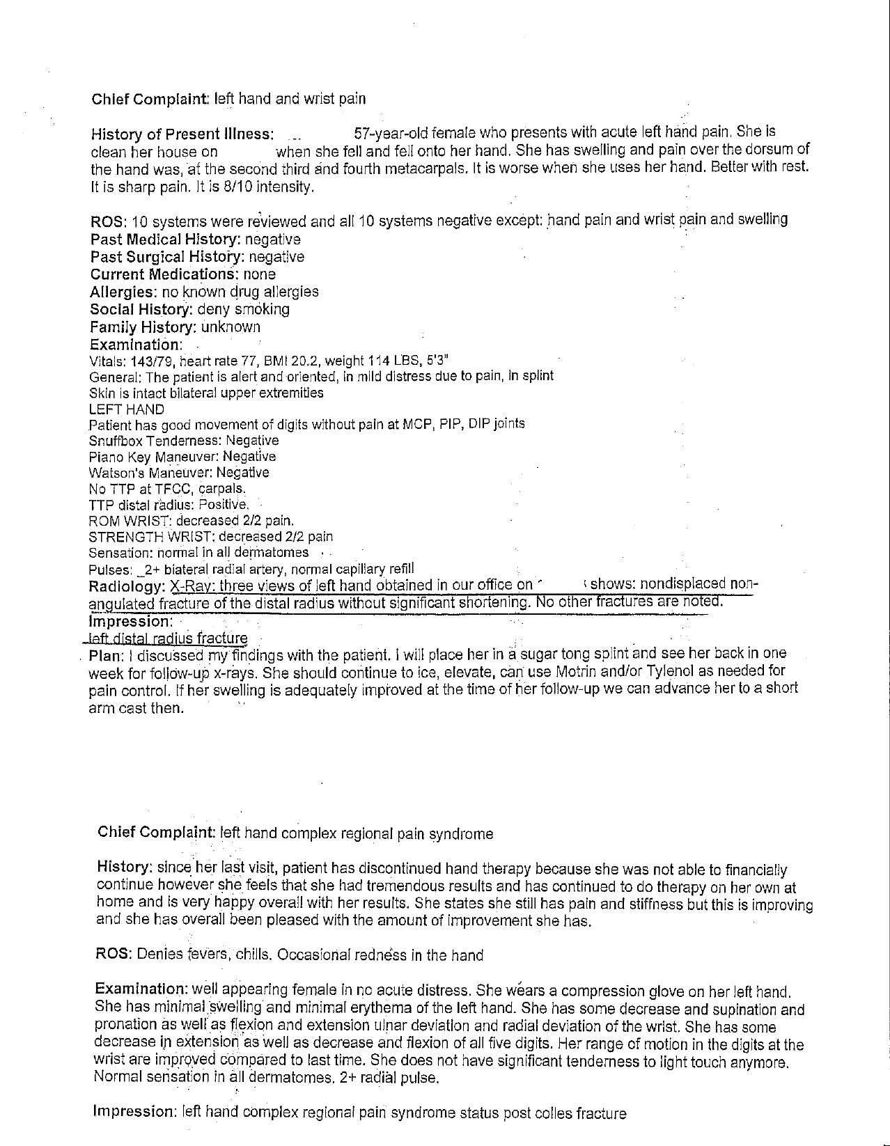 57 yo female with a chief complaint of left hand pain. She broke her wrist five months earlier after a trip and fall in her garage. Symptoms travel from the wrist down to the fingers and then up to the distal forearm. She reports decreased grip strength, finger ROM, and swelling. Xrays revealed a Colle’s fracture of the distal radius and she was casted. Two months later she was diagnosed with RSD. Upper Body SSR study showed an asymmetry pattern over the dorsal, radial, and lateral arm and forearm. The left was cold compared to the contralateral side.
